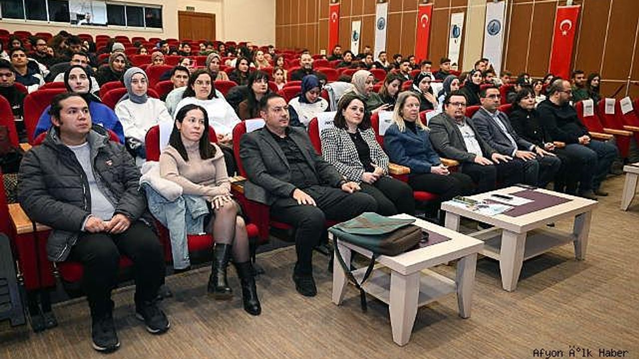 İbrahim Küçükkurt Konferans Salonunda düzenlenen etkinliğe, AKÜ GSF Dekanı Prof. Dr. Şerife Ebru Okuyucu, GSF Dekan Yardımcısı Dr. Öğretim Üyesi Sena Coşkun, Eğitim Fakültesi Dekan Yardımcısı Doç. Dr. Eray Eğmir ile birlikte akademik personel ve öğrenciler katıldı.