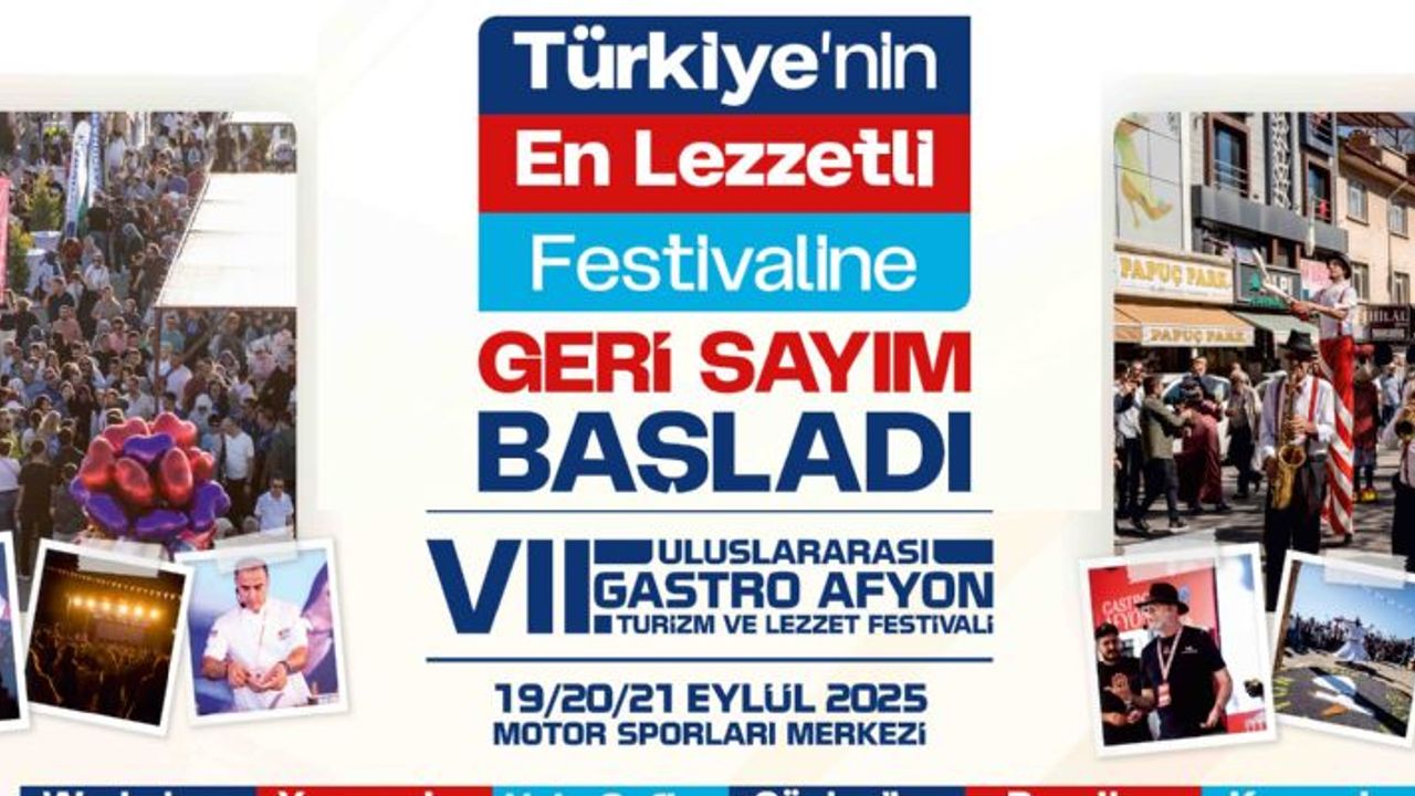7. Uluslararası Gastro Afyon Turizm ve Lezzet Festivali, 19-21 Eylül 2025 tarihlerinde Afyonkarahisar Motor Sporları Merkezi Festival Alanı’nda gerçekleştirilecek. Festival alanında 175 stant, workshoplar, tadım etkinlikleri, paneller, yarışmalar, çocuk etkinlikleri ve konserlerle üç gün boyunca ziyaretçilere unutulmaz bir deneyim sunulacak. Girişler ücretsiz olacak.
