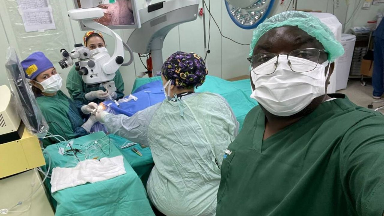 Doç. Dr. Ay “2024 yılında TİKA destekli bir katarakt ameliyatı organizasyonu için gönüllü olmuştum ve AFSÜ tarafından iki haftalığına Benin’e görevlendirilmiştim. O görevim sırasında asıl önemli olanın, oradaki hekimlerin eğitimi olduğunu fark ettim. Sonrasında, Benin’deki bir göz hastalıkları kongresine beni davet ettiler ve orada hem konuşmacı hem oturum başkanı olarak bulundum, böylece Afrikalı meslektaşlarımızla iyi ilişkiler kurmuş olduk. Dr. Pius ile orada tanıştıktan sonra Türkiye’de eğitim almaya istekli olduğunu gördüm. Benin’de, onun da hocası olan Prof. Chakiratou’yu geçtiğimiz aylarda kliniğimizde ağırladık. Prof. Chakiratou üniversitemizdeki imkânları görünce, asistanlarını buraya yollamak konusunda istekli davrandı ve personel hareketliliğine ilk olarak Dr. Pius ile başladık ama başka başvurular da tarafımıza ulaşmış durumda.