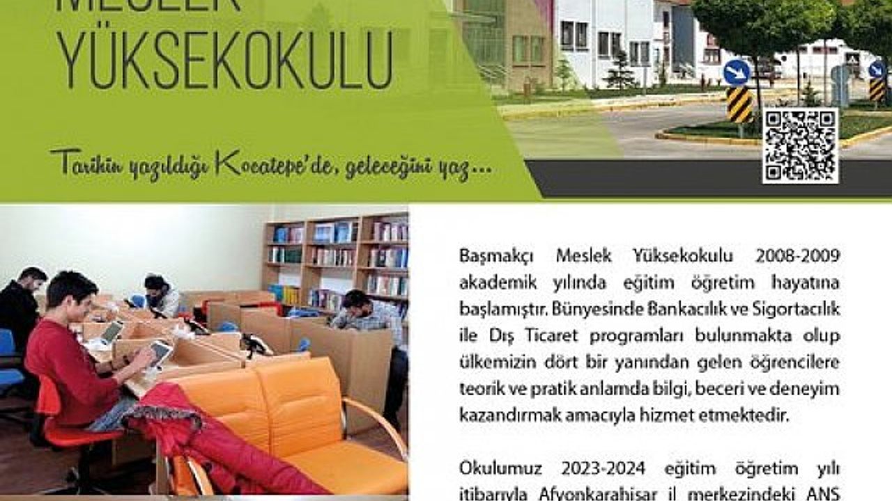 Başmakçı Meslek Yüksekokulu, mistik ve tarih kokan Kocatepe'de öğrencilere hizmet vermekte ve onların akademik ve kişisel gelişimlerine katkıda bulunmayı hedeflemektedir. Yeni eğitim dönemi için kapılarını açan yüksekokul, çeşitli programlar ve meslek eğitimi sunarak öğrencilere fırsatlar sunmaktadır.