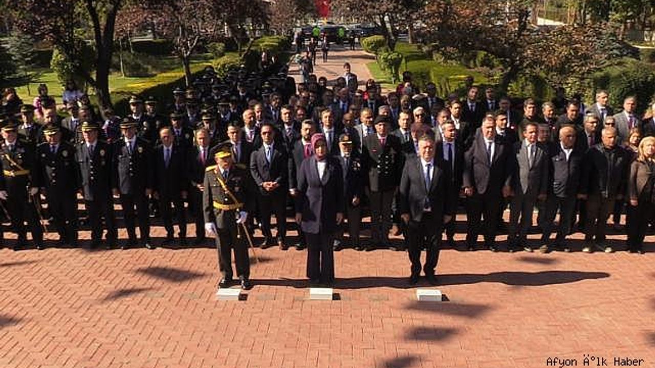 Afyonkarahisar'da, 29 Ekim Cumhuriyet Bayramı ve Cumhuriyet'in 101. yıl dönümü kutlamaları kapsamında Kocatepe Parkı'nda çelenk töreni düzenlendi.