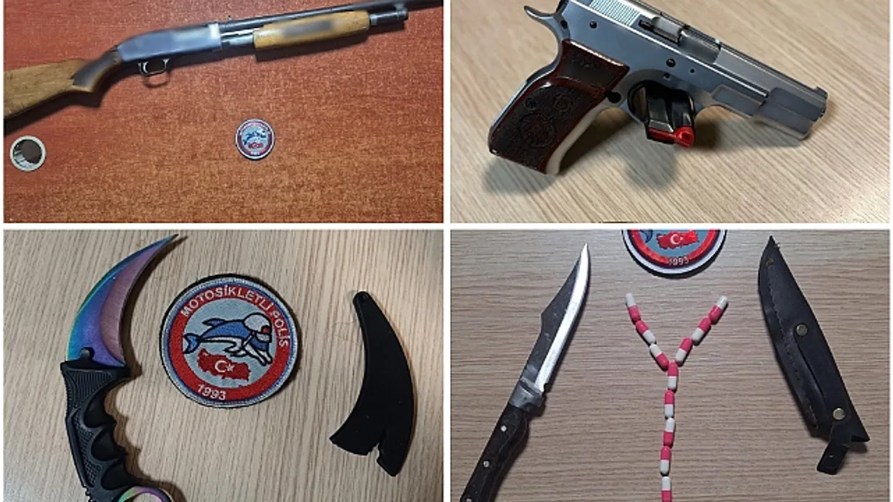 - Yapılan uygulama ve kontrollerde 3 adet tabanca, 2 adat kurusıkı tabanca, 1 adet tüfek, 29 adet bıçak ve 16 adet fişek, 0,4 gr uyuşturucu madde, 26 adet uyuşturucu madde, 109 adet uyuşturucu madde ele geçirilmiştir.