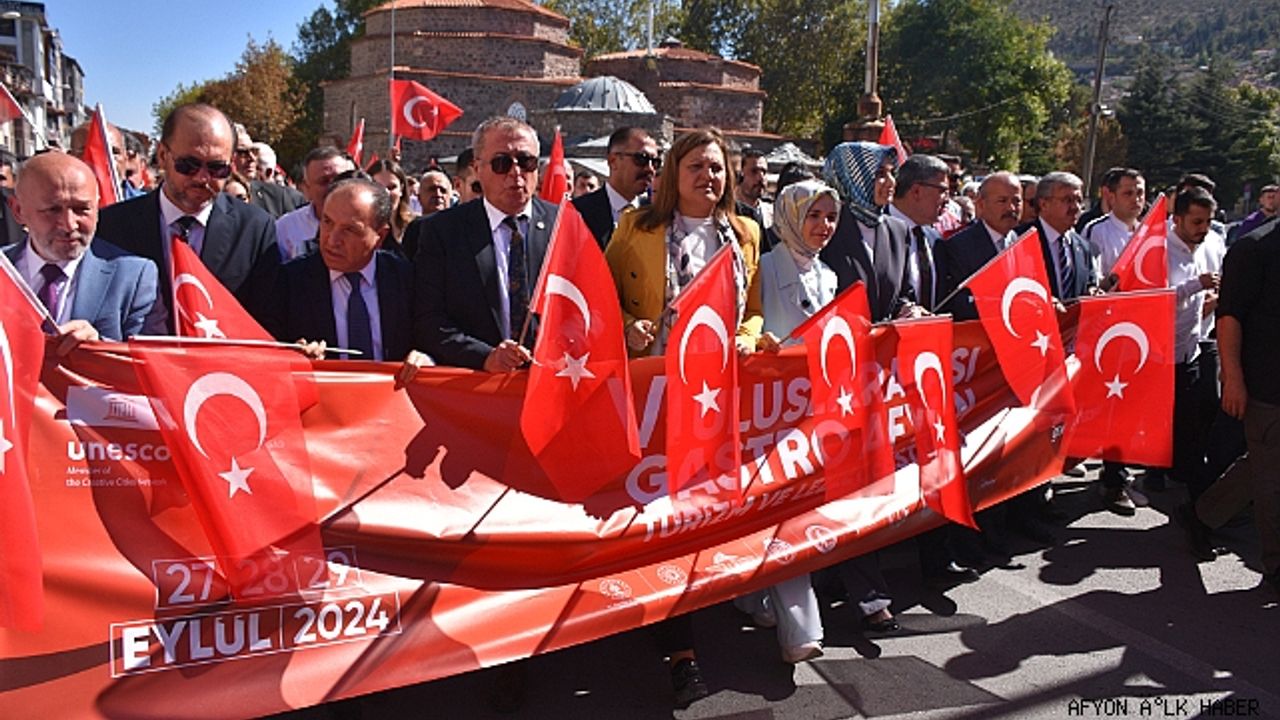 Bakan Göktaş, Afyonkarahisar'da 6. Uluslararası Gastro Afyon Turizm ve Lezzet Festivali Açılış Programı'nın İmaret Camisi'nden başlayıp Uzun Çarşı girişinde sonlanan kortej yürüyüşüne katıldı.