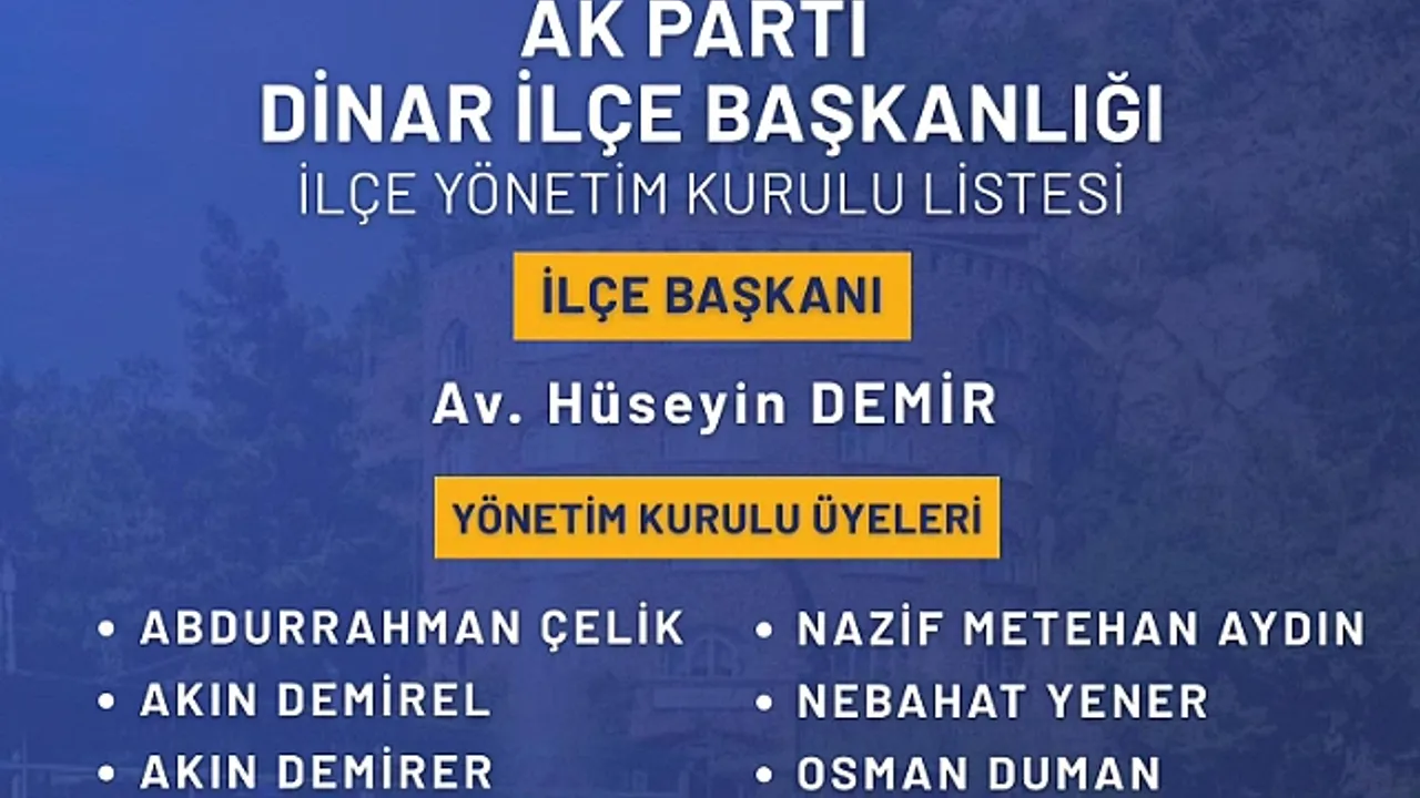 AK Parti Dinar İlçe Teşkilatı, genel merkezimizin onayıyla yeni yönetim kadrosunu oluşturmuştur.