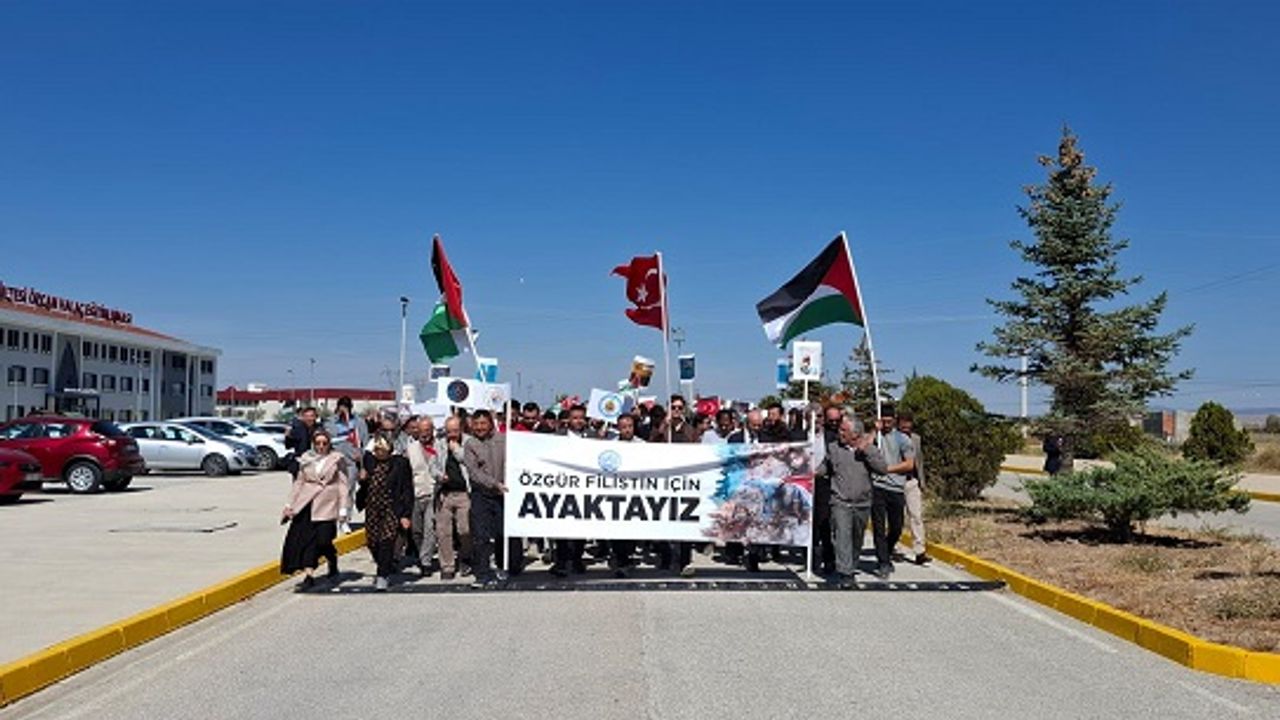 Afyon Kocatepe Üniversitesi (AKÜ) akademik ve idari personeli ile öğrencileri, İsrail’in Gazze’ye yönelik saldırılarını protesto etmek ve Küresel Sumud Filosu’na destek vermek amacıyla, eğitim-öğretim yılının dokuzuncu gününde de yürüyüşlerine devam etti.