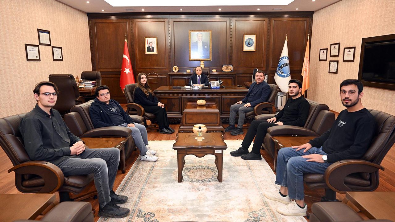 AKÜ Makine Mühendisliği Bölüm Başkanı ve LIFT-UP Projeleri Akademik Danışmanı Prof. Dr. Bekir Yalçın ve projelerde görev alacak öğrenciler Emre Yavuz, Kudret Arslan, Kâmil Çiçek, Bahtiyar Çiftçi, Baki Arhan Bektaş ve Deniz Suay, AKÜ Rektörü Prof. Dr. Mehmet Karakaş’ı makamında ziyaret ederek kabul edilen projelere ilişkin bilgiler paylaştı.
