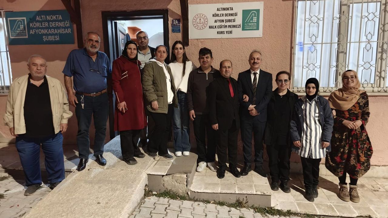 Açılışa; Halk Eğitimi Akşam Sanat Okulu İl Müdürü Sayın Abdullah Cemal Tola, Altı Nokta Körler Derneği Eğitimden Sorumlu Genel Başkan Yardımcısı ve Afyon Şube Başkanı Sayın Hakan Erdoğan, Kurucu Başkan Sayın Hamit Karapınar, öğretici Sayın Dilara Ateşali ve kursiyerler katılım sağladı.