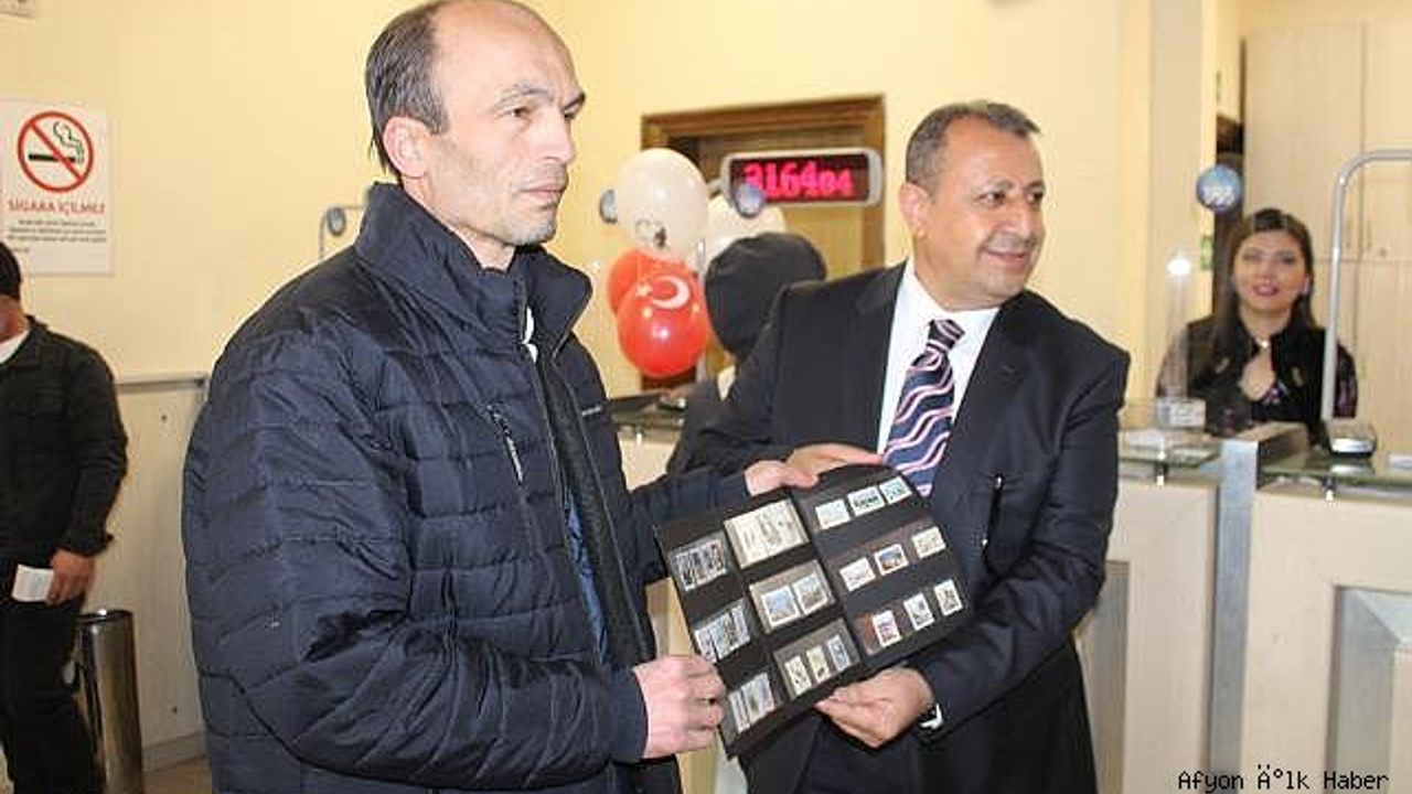 PTT Başmüdürü Örsdemir, 184. yaş günü dolayısıyla Afyon'da işlem yaptıran 184"üncü müşteri Mikail Yılmaz"a tarihe ışık tutan bir pul koleksiyonu hediye etti. Yılmaz, gişede işlem yaparken karşısında gazetecileri görünce şaşkınlık yaşadı. Yılmaz, "ATM"den para çekemedim, içeriden işlem yapmak istedim. Gazetecileri görünce şaşırdım. Bu güzel hediyeyi şahsıma verdikleri için PTT Müdürümüze ve posta teşkilatına teşekkür ederim" dedi.
