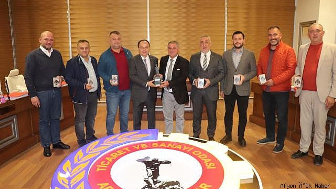 Afyon Eğitim Vakfı Genel Sekreteri Murat Diker, Afyonkarahisar Ticaret ve Sanayi Odası"nın ihtiyaç sahibi başarılı öğrencilere yaptığı burs katkıları dolayısıyla ATSO Yönetim Kurulu Başkanı Hüsnü Serteser ve Yönetim Kurulu Üyelerine teşekkür plaketi takdim etti.