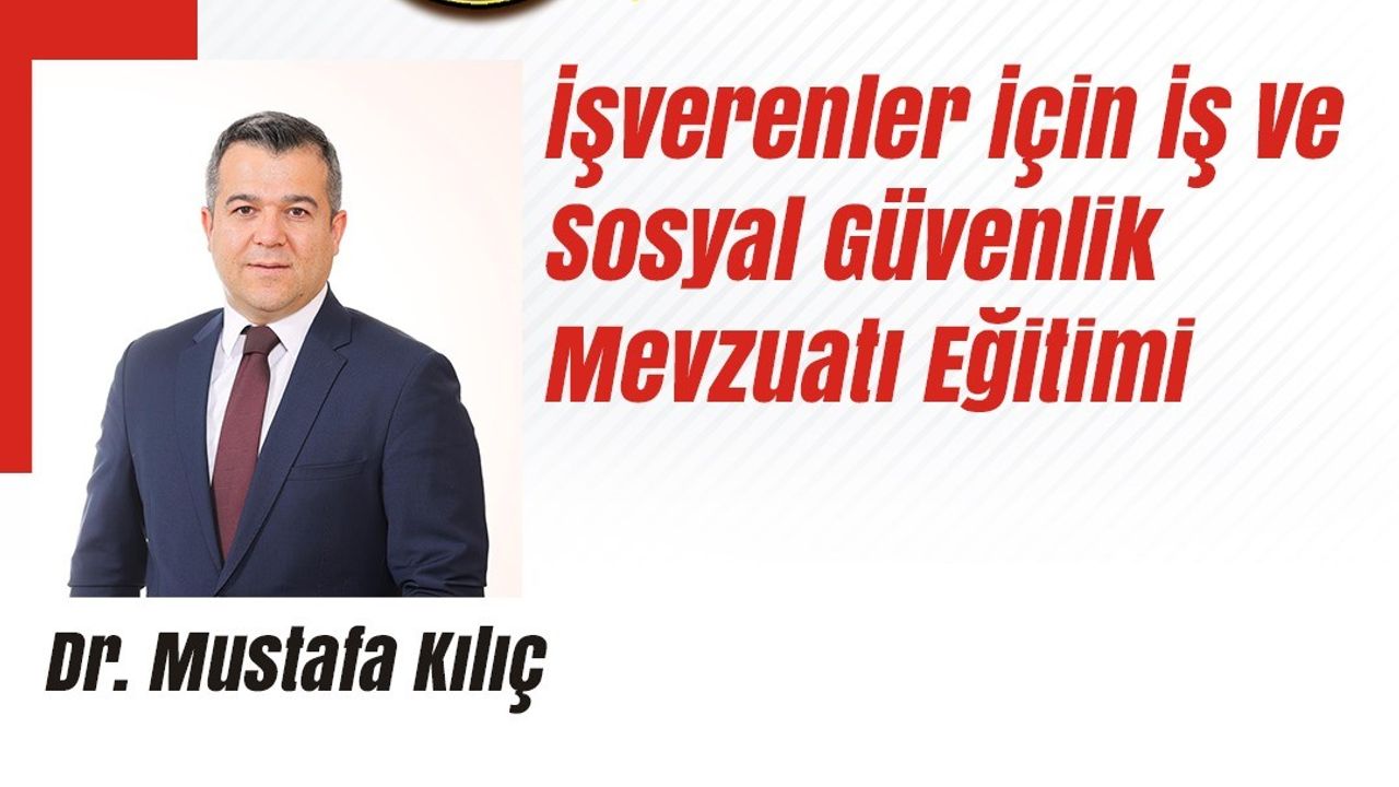 “İşverenler İçin İş ve Sosyal Güvenlik Mevzuatı Eğitimi”, 24 Eylül 2025 Çarşamba günü saat 14.00’te ATSO Hizmet Binası’nda gerçekleştirilecek. Eğitim, alanında uzman Dr. Mustafa Kılıç tarafından verilecek.
