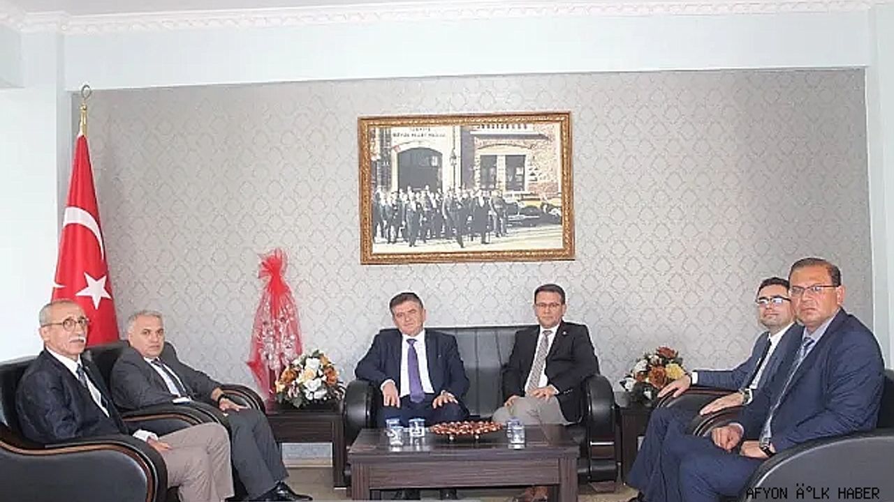 Afyonkarahisar Defterdarı İbrahim Gündüz Beraberinde Defterdar Yardımcısı Hüseyin Gezen, Defterdarlık Gelir Müdürü Cengiz Şirin, Dinar Vergi Dairesi Müdürü Adem Göbekli ve Dinar Malmüdür V. Fuat Özkan Kaymakamımız Kemal Duru"yu ziyaret etti.