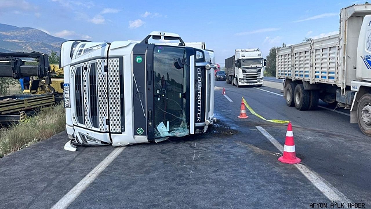 E.Ö. (51) idaresindeki 33 AHU 900 plakalı tır, Afyonkarahisar-Konya kara yolu Eber köyü yakınlarında devrildi.