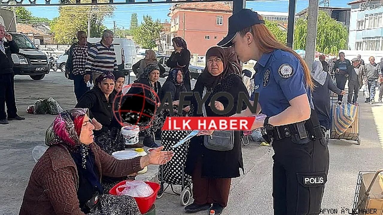 Dinar İlçe Emniyet Müdürlüğü Ekipleri Tarafından şehrimizin Salı Günü Kurulan Sebze ve Meyve Pazarında bulunan esnaf ve vatandaşlarımıza yönelik olarak "yankesicilik, sahte para, hırsızlık, cinsel taciz ve kadına şiddet (KADES)" konularında uyarılar ve