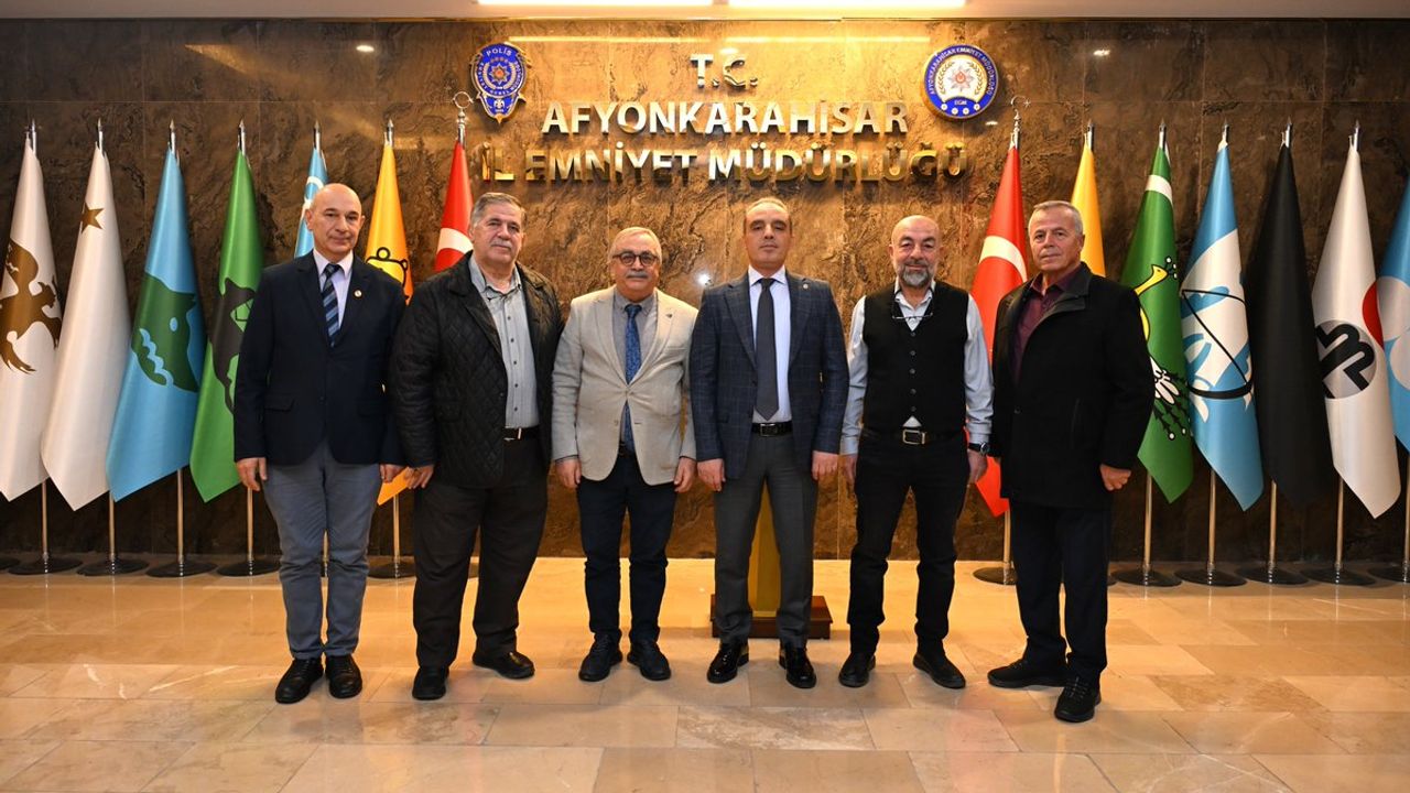 Ege Etkinlik Federasyonu ve Afyonkarahisar Düğün Salonları Dernek Başkanı Erhan Yücel, beraberindeki yönetim kurulu üyeleri ile birlikte Afyonkarahisar İl Emniyet Müdürü Ahmet Birtan Erol'u makamında ziyaret etti.