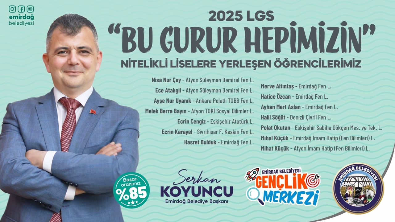 Emirdağ Belediyesi Gençlik Merkezi, yeni eğitim döneminde de öğrencilerine güçlü bir akademik destek sunmaya devam edeceğini belirten Belediye Başkanı Serkan Koyuncu, “Bu başarı, Gençlik Merkezimizde dershane formatında, alanında uzman hocalar eşliğinde yürütülen ücretsiz eğitimlerin ve öğrencilerimizin azminin eseridir. Aynı kararlılıkla yeni dönemde de kapılarımızı tüm gençlerimize açacak, ücretsiz kurslarımız, deneme sınavlarımız ve birebir rehberlik desteğimizle başarı hikâyelerine yenilerini ekleyeceğiz. Onların başarısı, hepimizin gururu." ifadelerini kullandı.