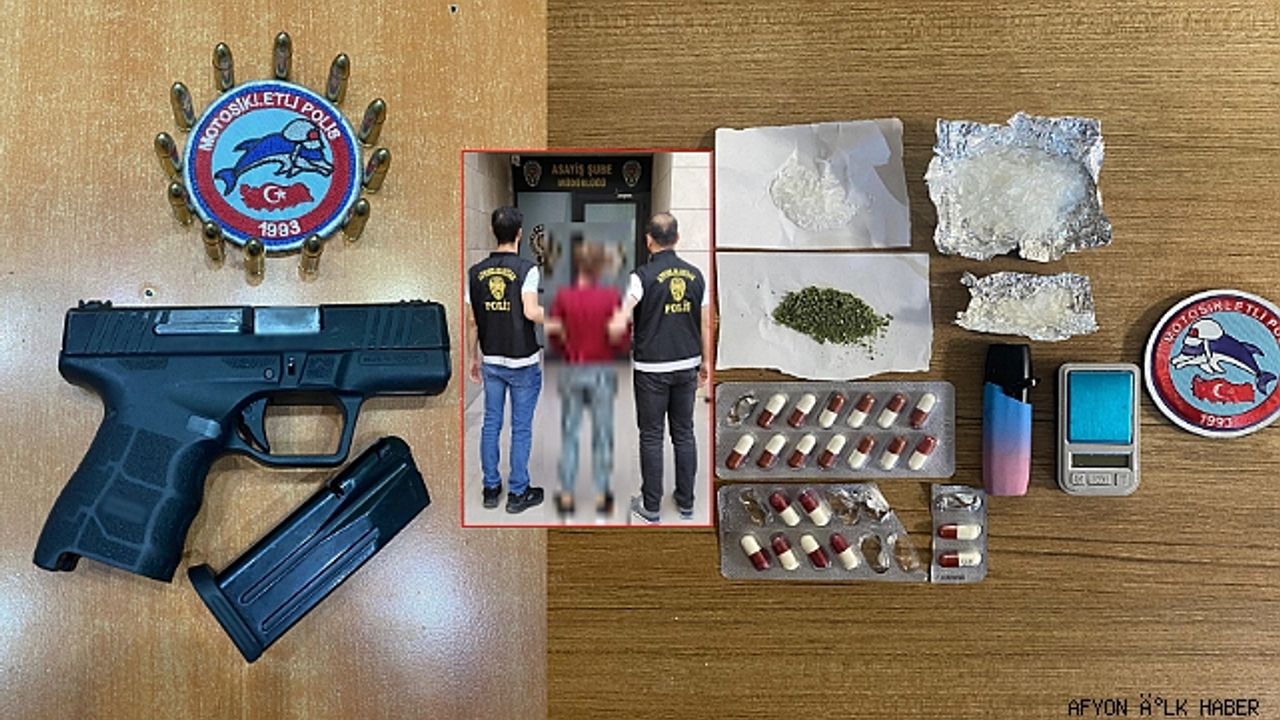 İl Emniyet Müdürlüğü tarafından gerçekleştirilen denetim ve uygulamalarda; 9,6 gram uyuşturucu madde, 22 parça halinde uyuşturucu, 138 adet uyuşturucu hap, 5 adet ateşli silah, 2 adet kurusıkı tabanca, 3 adet tüfek, 14 bıçak ve 138 fişek ele geçirildi. Polis ekipleri, suç ve suçluyla mücadeleyi sürdürerek Afyonkarahisar'da huzur ve güven ortamının korunması için çalışmalarını kesintisiz olarak devam ettiriyor.