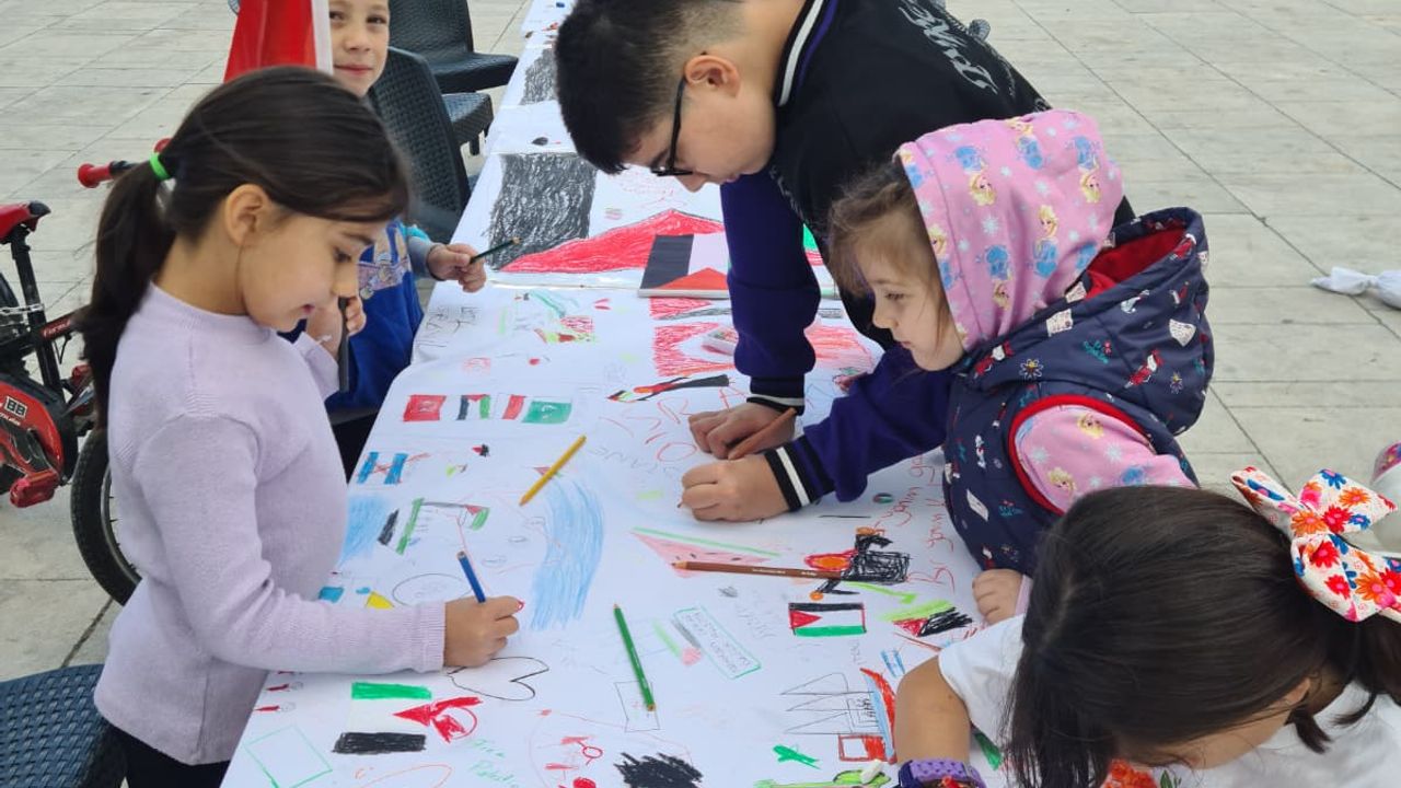 İHH Afyonkarahisar ve Yetim Vakfı iş birliğiyle Çocuklar, Gazze’de yaşanan zulme dikkat çekmek ve kardeşlerine destek olmak amacıyla anlamlı resimler çizdi. Ortaya çıkan eserler, minik yüreklerin taşıdığı büyük duyarlılığı bir kez daha gözler önüne serdi.