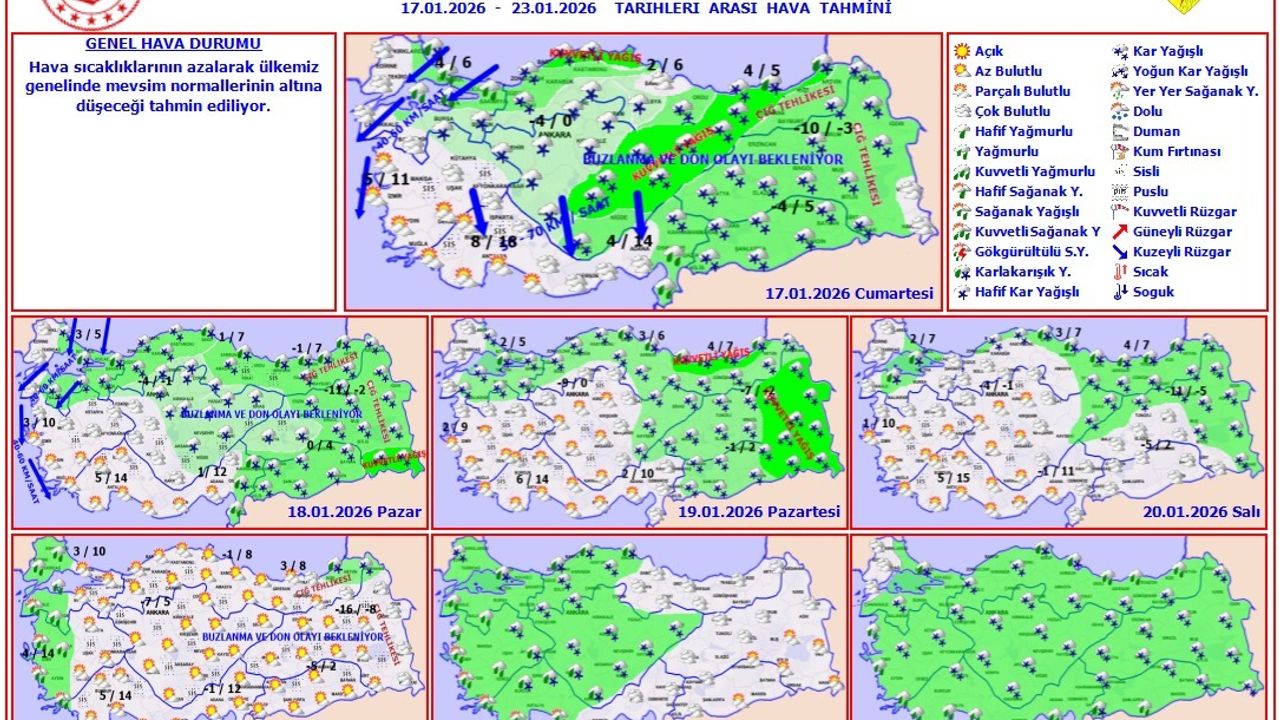 Bu süreçte kuvvetli buzlanma ve don olaylarının görülmesi beklendiğinden başta ulaşımda aksamalar olmak üzere, meydana gelebilecek olumsuzluklara karşı vatandaşlarımızın ve ilgili kurumların dikkatli ve tedbirli olmaları önem arz etmektedir.
