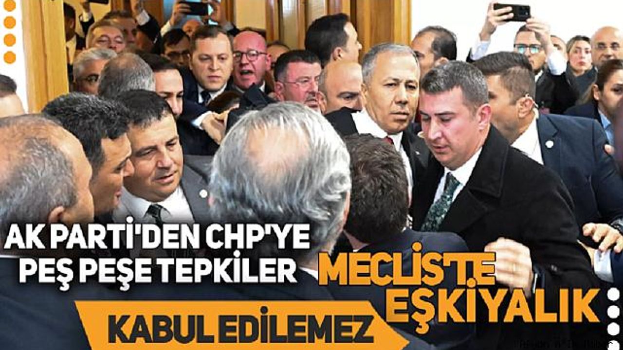 AK Parti Sözcüsü Ömer Çelik, CHP milletvekillerinin İçişleri Bakanı Ali Yerlikaya'ya yönelik Meclis'teki saldırısını "barbarlık" olarak nitelendirdi. Adalet Bakanı Yılmaz Tunç ve Cumhurbaşkanı Yardımcısı Cevdet Yılmaz da saldırıyı sert sözlerle kınadı.