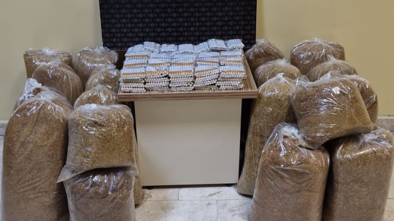Operasyon kapsamında bir iş yerinde yapılan aramada, piyasa değeri yüksek olan 85 kg kıyılmış kaçak tütün ve 1560 adet doldurulmuş makaron (kaçak içimlik tütün) ele geçirildi.