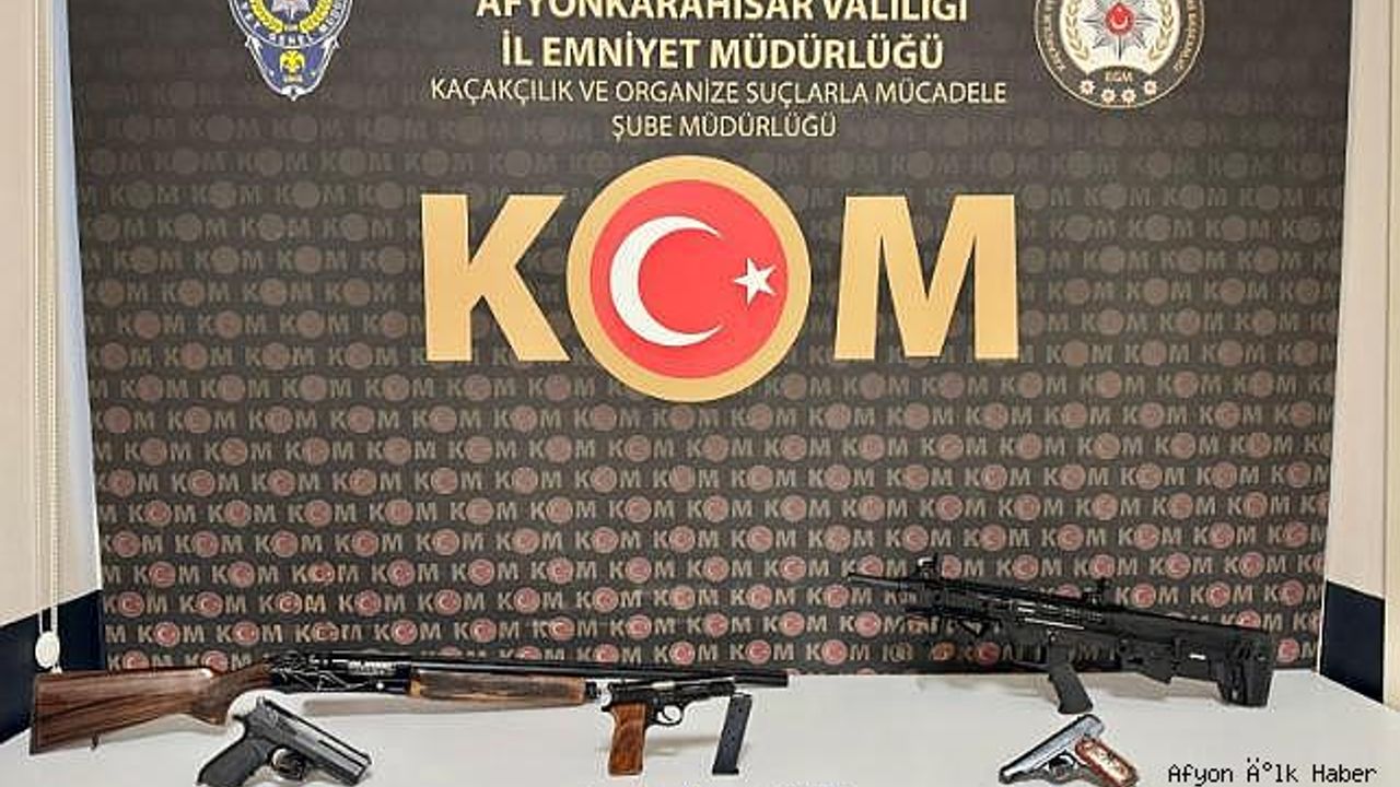 Gerçekleştirilen aramada, 3 adet tabanca, 2 adet tüfek ve 64 adet fişek bulundu.