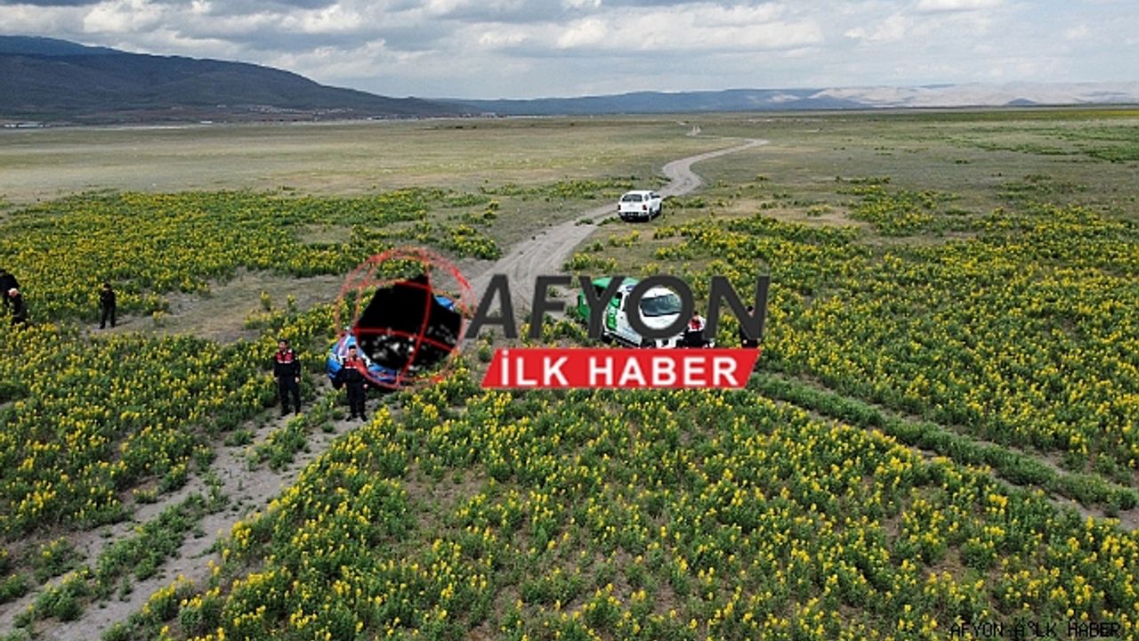 Afyonkarahisar'da koparıldığında 387 bin 141 lira cezası bulunan endemik bitki türü "Eber Sarısı"nın bulunduğu alanlar drone ile kontrol ediliyor.