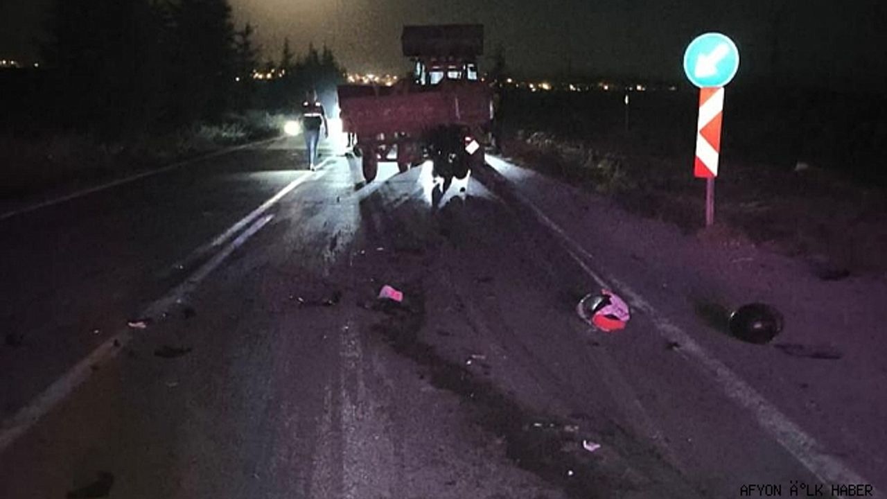 Afyonkarahisar'ın Evciler ilçesinde motosikletin traktöre çarpması sonucu 2 kişi yaşamını yitirdi.