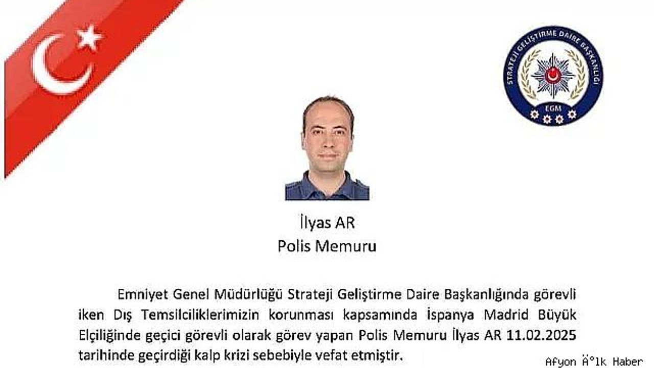 Yurt Dışında Geçici Görevde iken Kalp Krizi Sonucu Afyonkarahisar Nüfusuna Kayıtlı Polis Memuru İlyas Ar VEFAT Etmiştir.