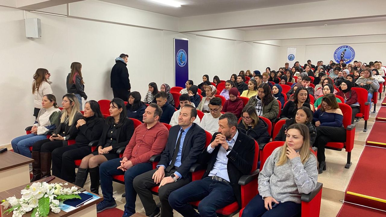 Yunus Emre Yerleşkesi Konferans Salonunda düzenlenen konferansa; AKÜ Sandıklı MYO Müdür Yardımcıları Dr. Öğretim Üyesi İsmail Osmanoğlu ve Öğr. Gör. Orhan Özdemir, Afyonkarahisar Sağlık Bilimleri Üniversitesi (AFSÜ) Eczacılık Fakültesi Dr. Öğretim Üyesi Nurnehir Baltacı Bozkurt ile akademik personel ve öğrenciler katıldı.