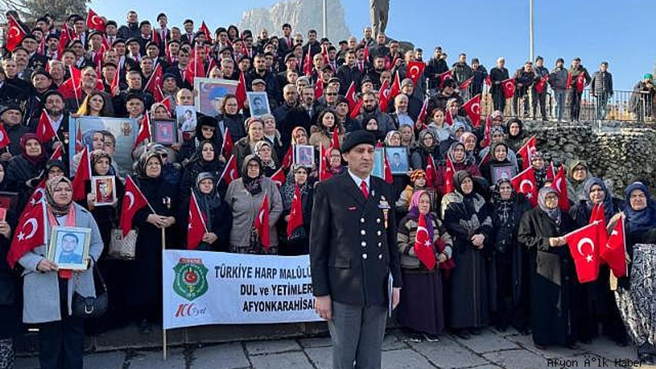 Afyonkarahisar'da, Utku Anıtı önünde toplanan şehit aileleri, Abdullah Öcalan ile yapılan görüşmelere tepki gösterdi.