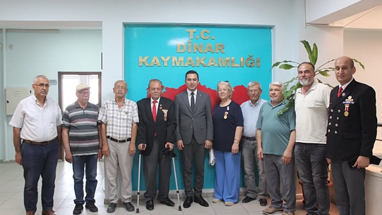 Türkiye Harp Malulü Gaziler Şehit Dul ve Yetimleri Derneği Afyonkarahisar Şube Başkanı Malül Gazi İsmail Kumartaşlı, Dinar Temsilcisi Hasan Ceylan, Sandıklı Temsilcisi Yusuf Akın, Muharip Gaziler Derneği Dinar Temsilcisi Tevfik Kılıçkaya ile birlikte şehit aileleri ve gaziler, Kaymakamımız Hasan UĞUZ’u makamında ziyaret etti.