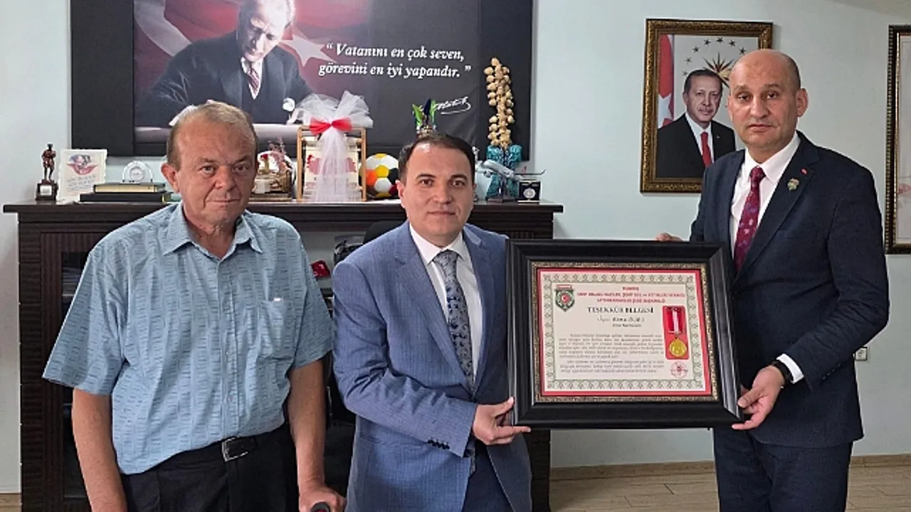 Sayın Kaymakamımıza Yeni Görevinin Hayırlı Olmasını Diledik. Dinar’daki Görev Süresi Boyunca Şehit Ailelerimiz ve Gazilerimiz Adına Gösterdiği Yakın İlgi, Alakadan ve Kabulünden Dolayı Teşekkür Ettik. Hizmetlerinden Dolayı Derneğimiz Özel Teşekür Belgesi ve Hizmet Madalyası Takdim Ettik.