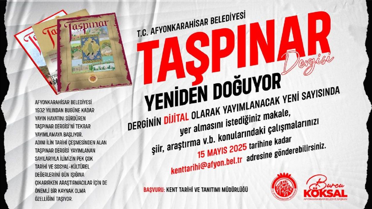 Afyonkarahisar Belediyesi olarak, 1932 yılından bu yana yayınlanan ve şehrimizin kültürel belleğinde önemli bir yer edinen Taşpınar Dergisi’ni dijital ortamda yeniden yayımlamaya hazırlanıyoruz.
