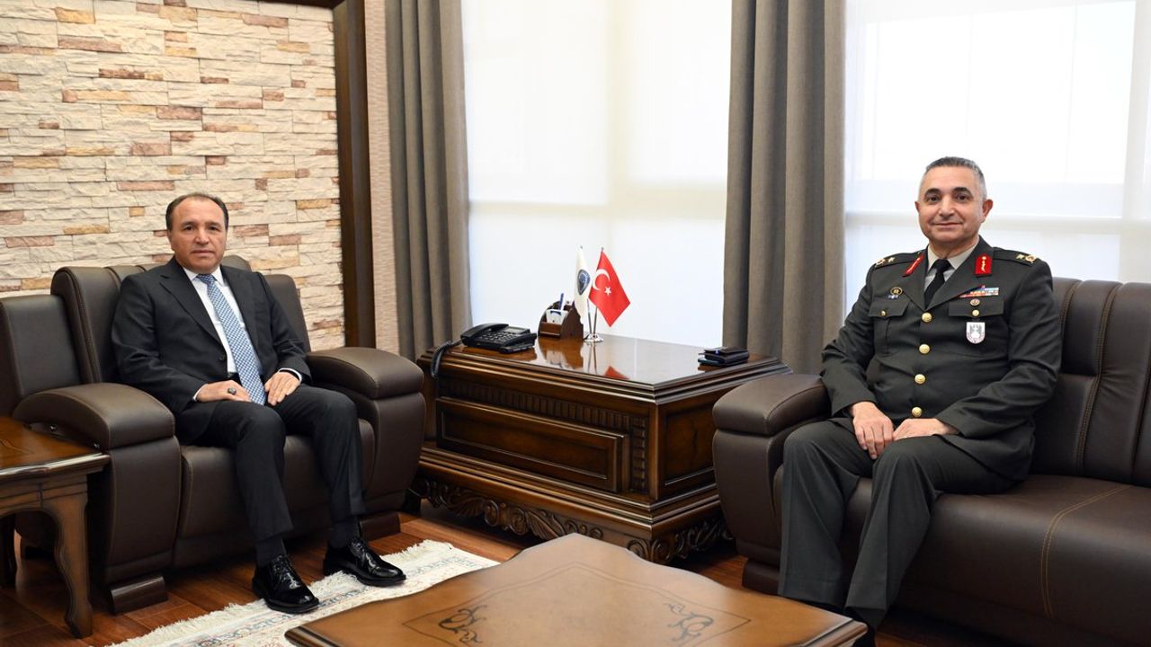 Afyonkarahisar İkmal ve Garnizon Komutanı Tuğgeneral Dr. Yalçın Tecimer, Afyon Kocatepe Üniversitesi (AKÜ) Rektörü Prof. Dr. Mehmet Karakaş’a nezaket ziyaretinde bulundu.