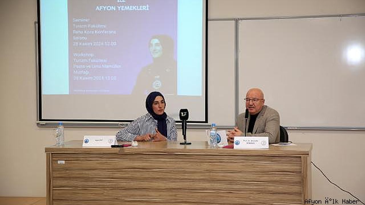 Afyon Kocatepe Üniversitesi (AKÜ) Turizm Fakültesinde MasterChef yarışmacısı Ayşe Ekiz, öğrencilere “Afyon Yemekleri”ni anlattı.