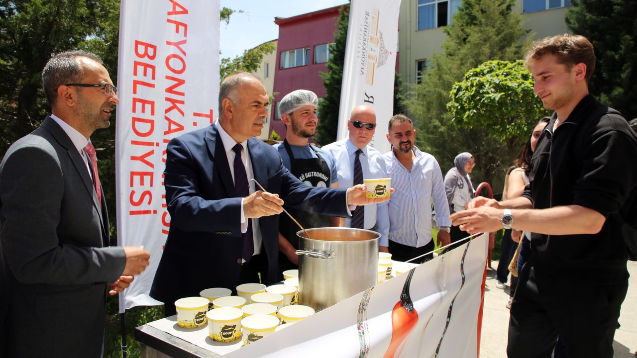Afyon Kocatepe Üniversitesi (AKÜ) Turizm Fakültesi Gastronomi ve Mutfak Sanatları Bölümü, 21–27 Mayıs tarihleri arasında kutlanan Türk Mutfağı Haftası kapsamında üniversite öğrencilerine Sakala Çarpan çorbası ikram etti.