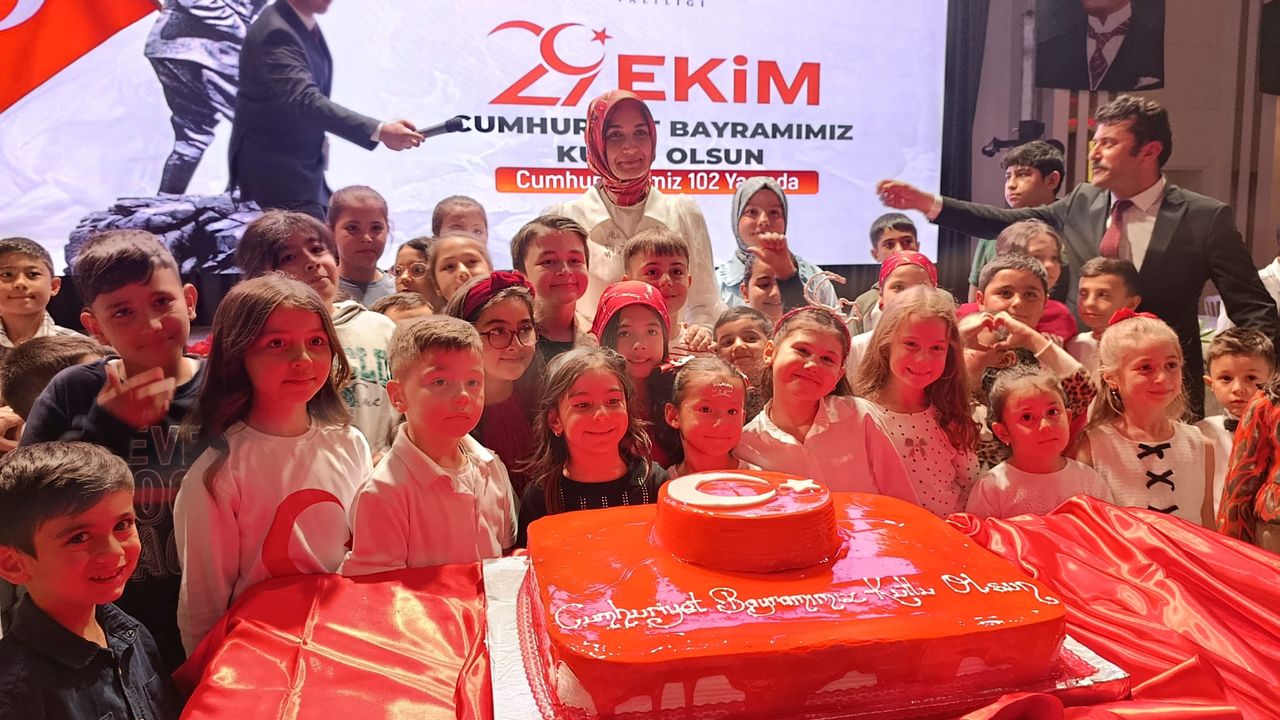 Vali Yiğitbaşı, pasta kesimi öncesinde sahneye tüm çocukları davet ederek örnek bir davranış sergiledi. Miniklerle tek tek ilgilenen Yiğitbaşı, çocuklarla birlikte geriye sayım yaparak "Cumhuriyet Bayramımız kutlu olsun" mesajıyla pastayı kesti.