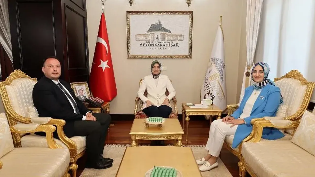 Afyonkarahisar Valisi Doç. Dr. Kübra Güran Yiğitbaşı, Aile ve Sosyal Hizmetler Bakanlığı Bakan Müşaviri Ayşe Çakmak ile Sosyal Yardımlaşma ve Dayanışma Vakfı Müdürü Yaman Şenol’u makamında kabul etti.