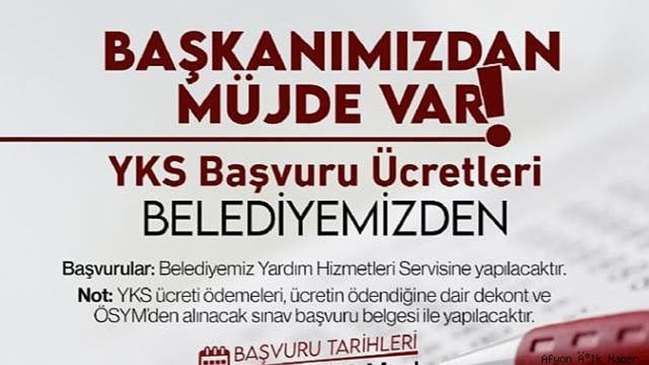 Afyonkarahisar Belediyemiz, eğitim hayatına katkı sağlamak amacıyla Yükseköğretim Kurumları Sınavı (YKS) başvuru ücretlerini karşılıyor.
