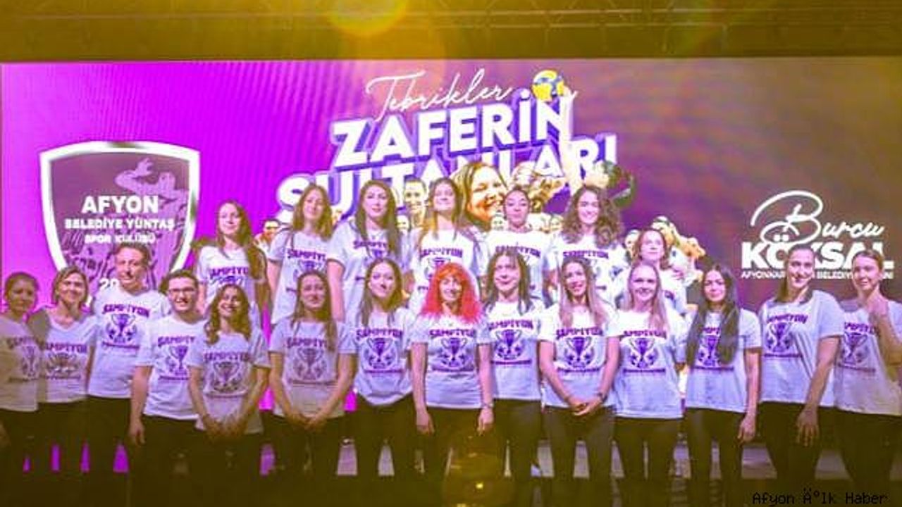 Afyon Belediye Yüntaş Kadın Voleybol Takımı, TVF Kadınlar 2. Ligi Play-Off Final Etabı"nı şampiyonlukla tamamlayarak 1. Lig"e yükseldi. Bu büyük başarı, Veysel Eroğlu Kapalı Spor Salonu'nda düzenlenen coşkulu bir törenle kutlandı.
