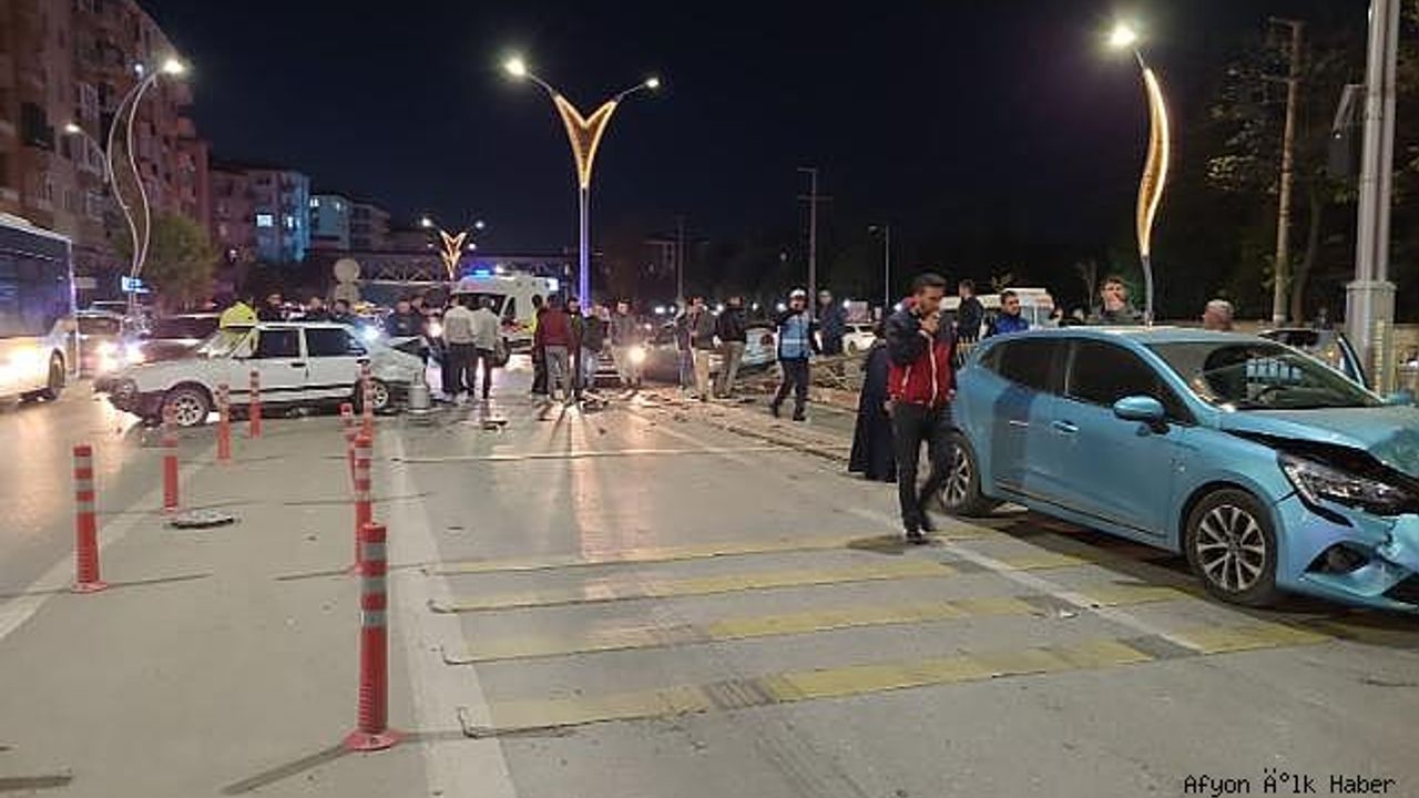 Afyonkarahisar'da meydana gelen zincirleme trafik kazası, Park Afyon önünde gerçekleşen korkunç olayda dört otomobil birbirine girdi.