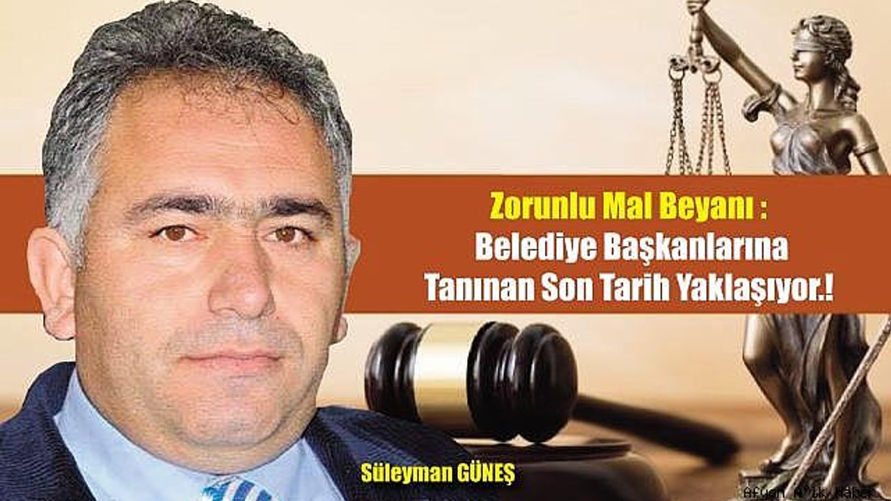 Kamu Yönetim Uzmanı ve Kamu Muhasebe Yetkilisi Süleyman Güneş, Belediye Başkanlarına yönelik mal beyanı zorunluluğu hakkında önemli bir yazı kaleme aldı.